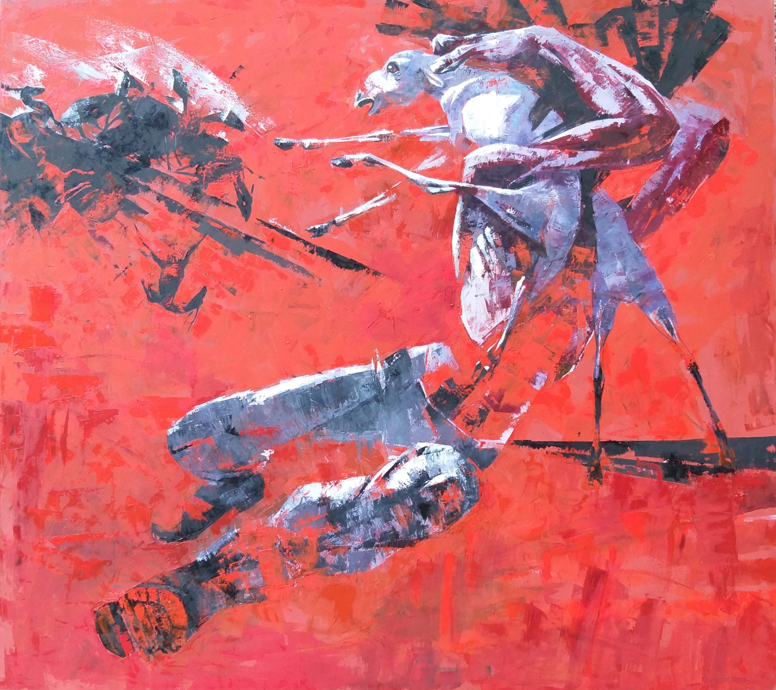 Қызыл түс картинаның негізгі реңкі болып табылады және ол қауіп пен драматизмді бейнелейді. Қызыл түс сонымен қатар қанды, зорлық-зомбылықты және табиғаттың шырылдаған күйін көрсетеді. Суреттегі қара және ақ түстер контраст пен динамика қосып, көрерменнің назарын негізгі оқиғаға шоғырландырады.